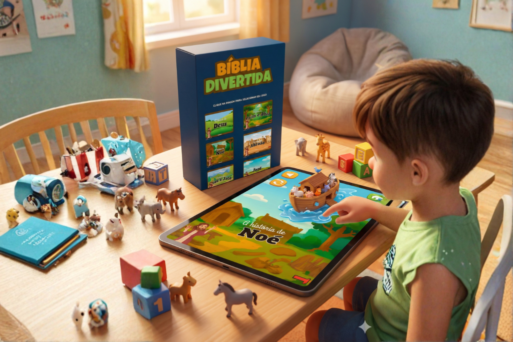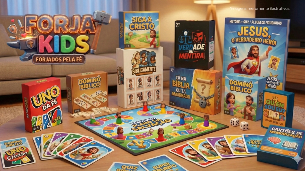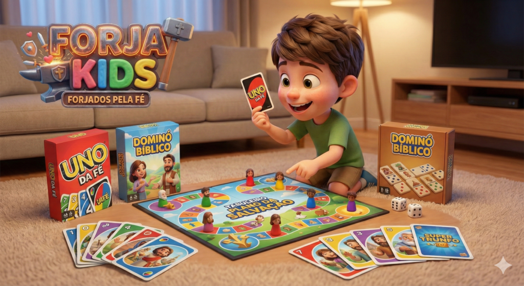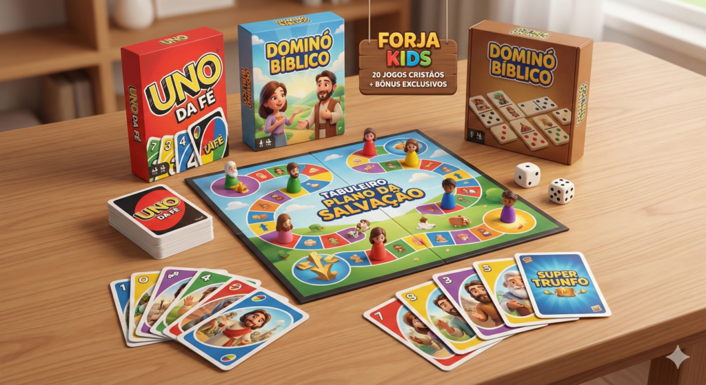 Ensine sobre Deus enquanto seus filhos se divertem com o Forja Kids, o maior combo de jogos bíblicos interativos para famílias cristãs.