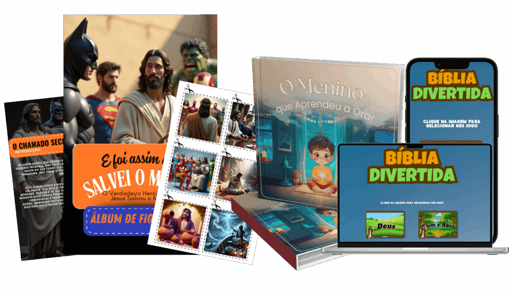 🎁 Bônus 2 – Álbum de Figurinhas – Jesus, o Verdadeiro Herói: Uma forma criativa e envolvente de ensinar a maior história de todas: a de Jesus, nosso Salvador! As crianças vão colar, completar e acompanhar cada momento da jornada de Cristo